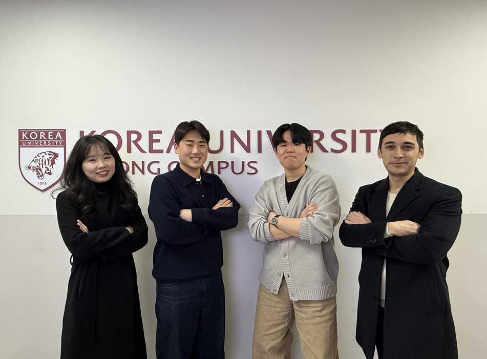 △(从左起)电子·机械融合工程系苏顺爱(音)教授、控制测量工程系硕士生崔锡柱(音)、电子与信息工程系硕士生姜敏成(音)、Trevon Badloe教授