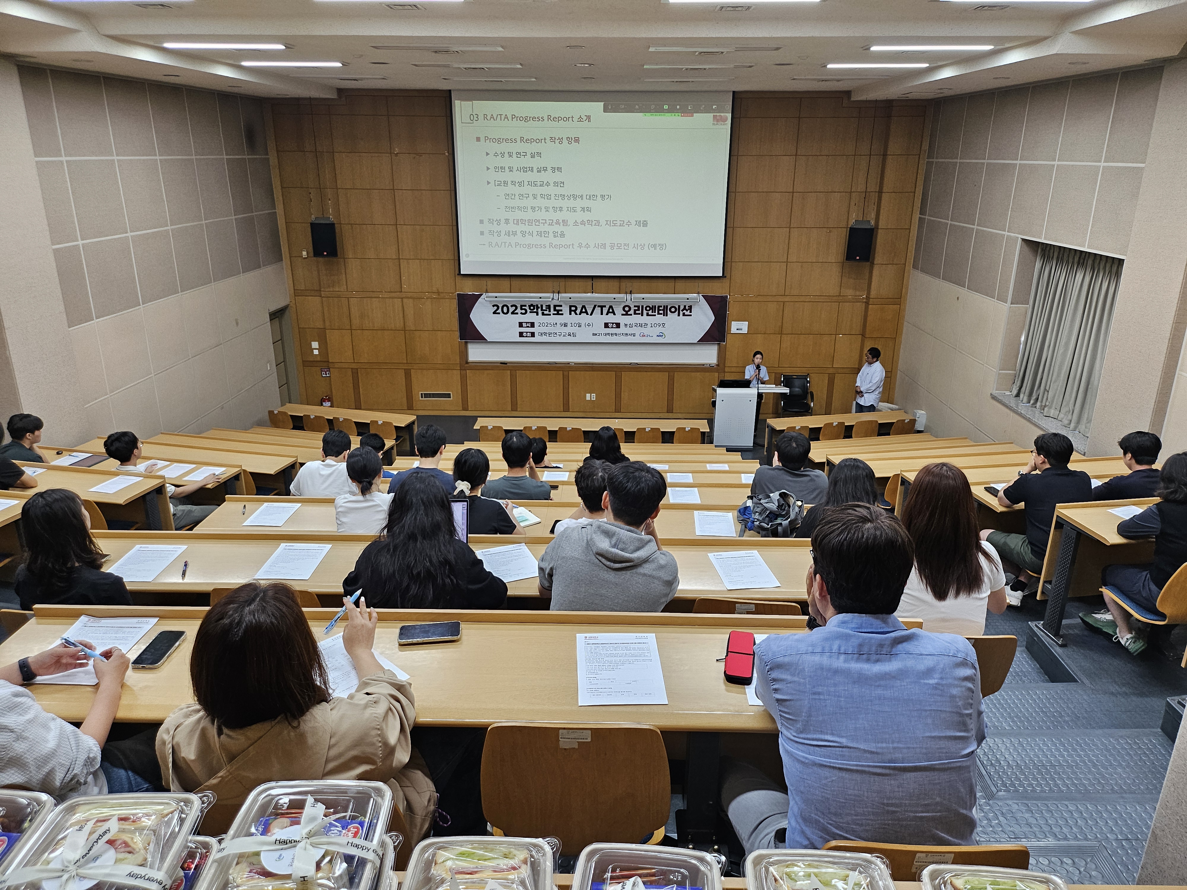 이번 오리엔테이션은 2025학년도 2학기 RA/TA로 임용된 대학원생들을 대상으로 △조교 제도 및 규정 안내 △신규 제도인 Progress Report 설명 △대학원생 권리장전 안내 △대학원혁신사업 소개 등 다양한 주제로 구성됐다.
