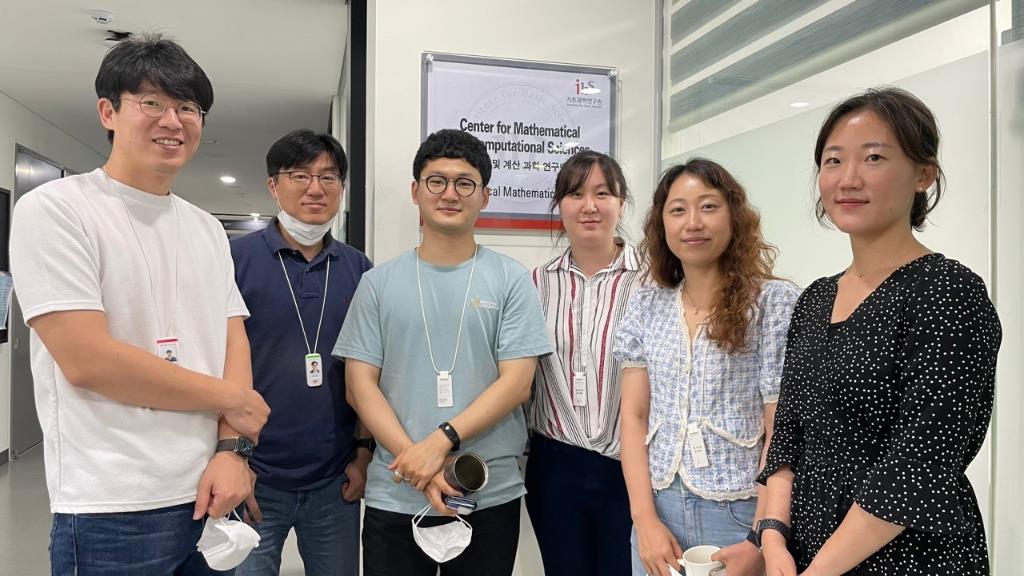 (왼쪽부터) 김재경 CI(IBS/KAIST, 공동 교신저자), 최보승 교수(IBS/고려대, 공동 교신저자), 홍혁표 박사(IBS/KAIST, 현 소속: 위스콘신대, 공동 제1저자), 이효정 교수(경북대), 최선화 선임연구원(NIMS, 공동 교신저자), 엄은진 박사(고려대, 현 소속 질병관리청, 공동 제1저자)